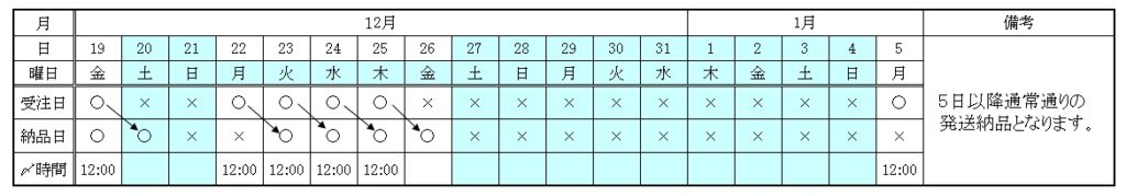 ※ 年内最終出荷は12月25日(木)・26日(金)のお届けとなります